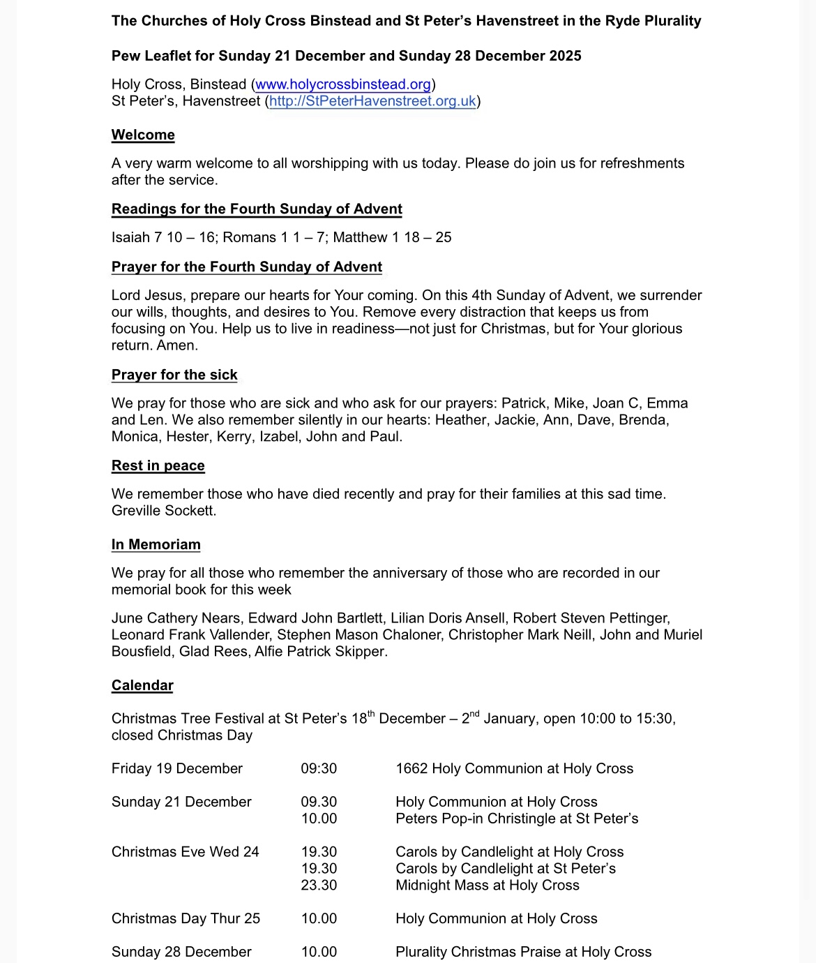 Pew Leaflet for the Fourth Sunday of Advent