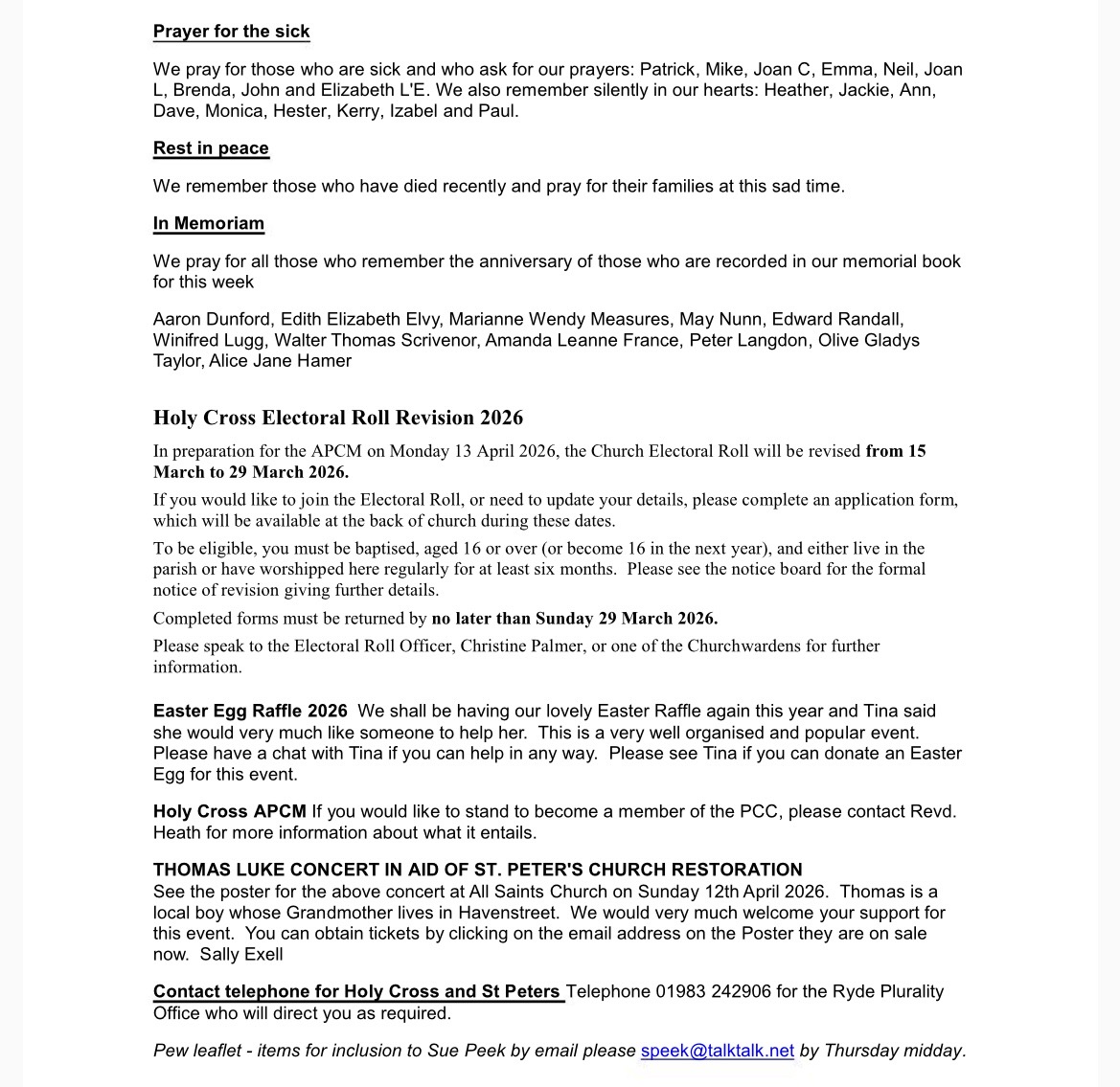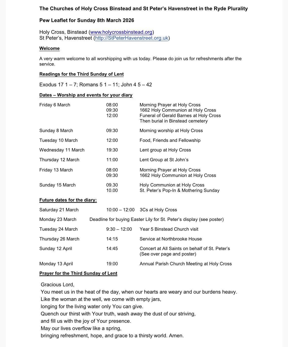 Pew Leaflet for the Third Sunday of Lent
