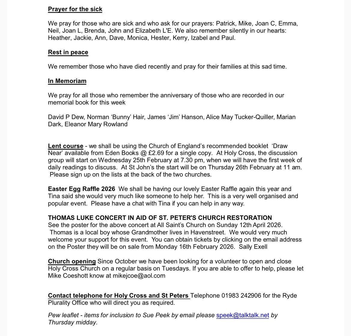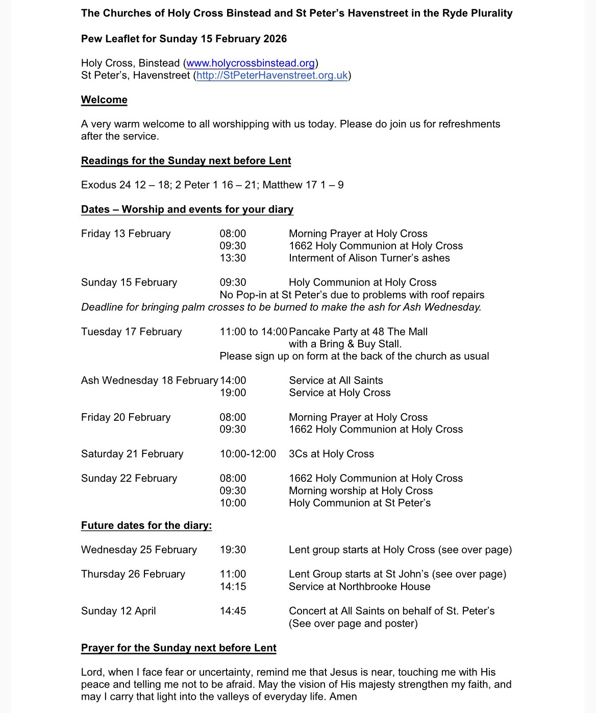 Pew Leaflet for Sunday 15th February 2026